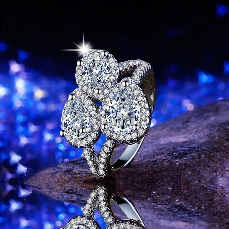 2022 модное женское кольцо серебряного цвета с инкрустированными кристаллами в виде капли воды Стразы с цирконом для женщин ювелирные изделия вечерние Ринок и свадеб