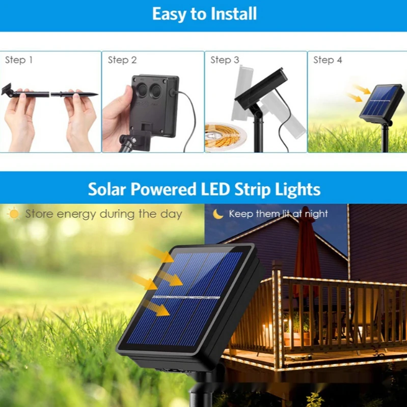 Уличная Гибкая цветная лента RGB на солнечной батарее, водонепроницаемая светодиодная лента, красивый фон, инструмент для создания атмосферы