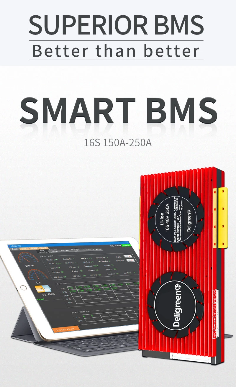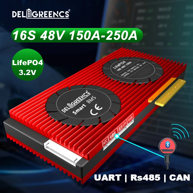 Смарт BMS 16S BMS 150A 200A 250A с Bluetooth UART 485 CAN для 58,8 V LifePO4 аккумуляторного блока UART CAN для EV Ebike Power storage