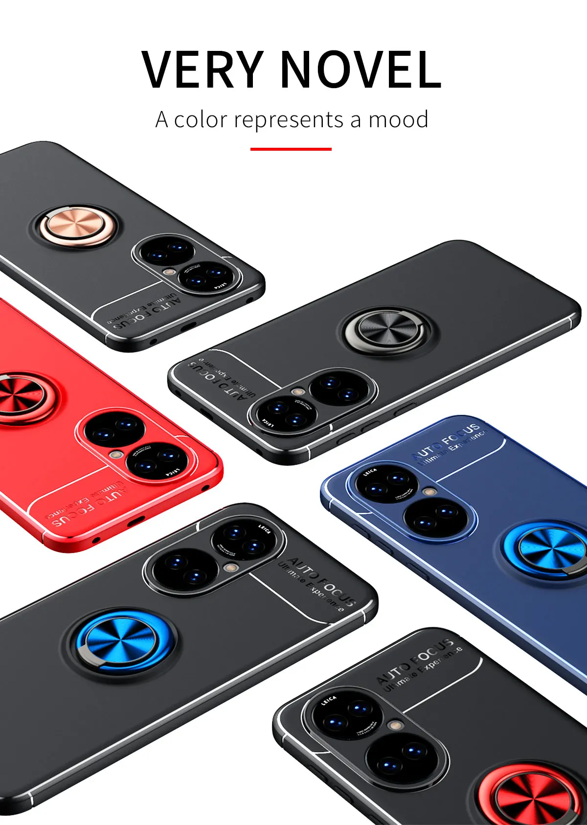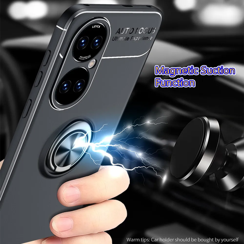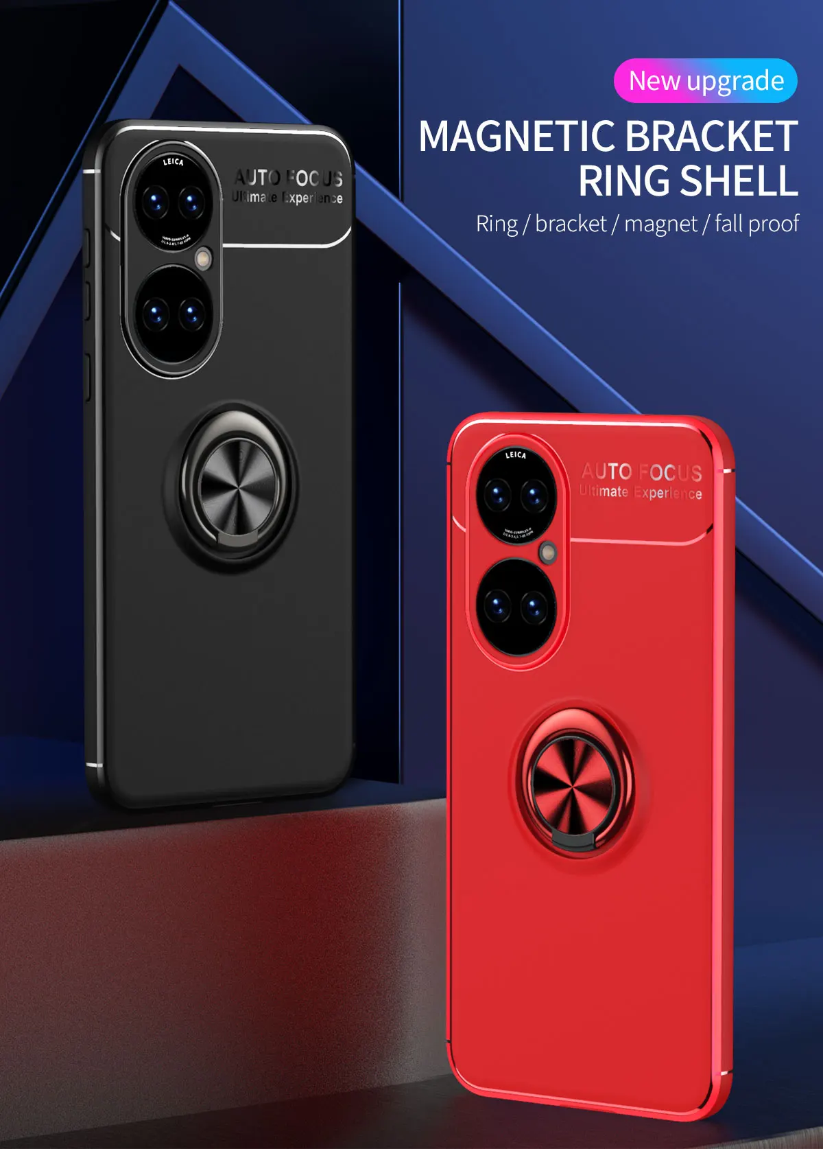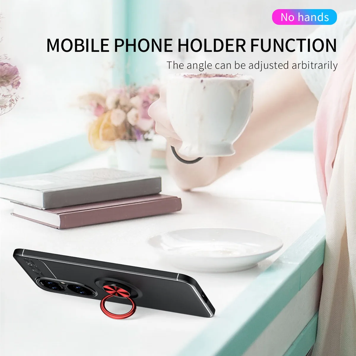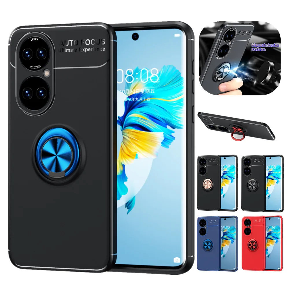 Чехол для телефона Huawei P50 P40 Lite E P30 P20 Mate 40 Pro Plus 30 20 20X Мягкий ТПУ чехол с кольцом держатель Кронштейн Автомобильный Магнитный чехол