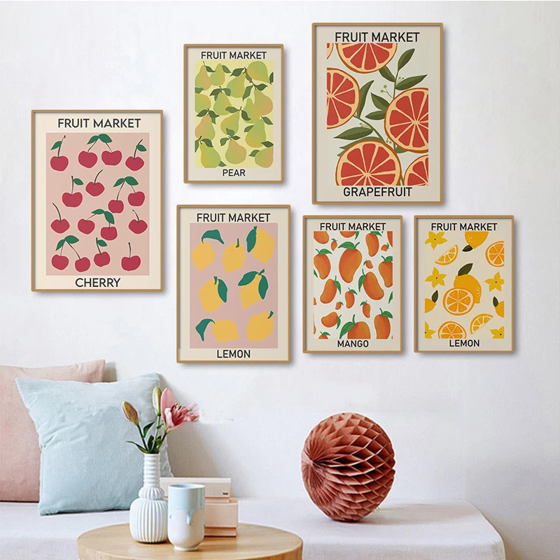 Фруктовая вишня, лимон, грейпфрут, банан, манго, плакаты и принты, настенная живопись на холсте, картины для кухни, магазина, современный декор