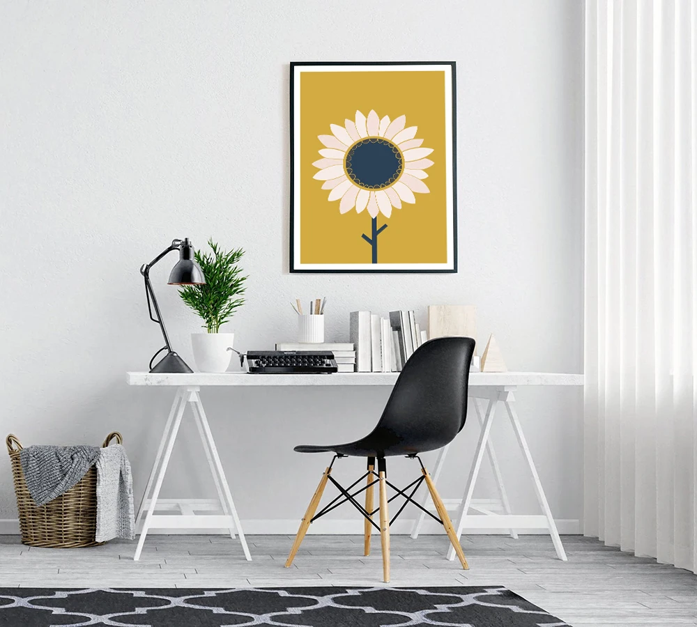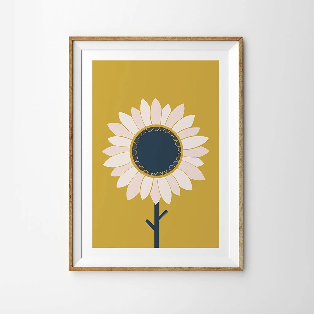 Красивый минималистичный Подсолнух горчичного желтого цвета, скандинавский стиль, настенный художественный принт, для спальни, гостиной, декоративный постер