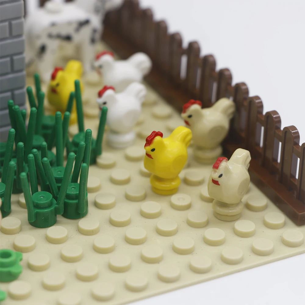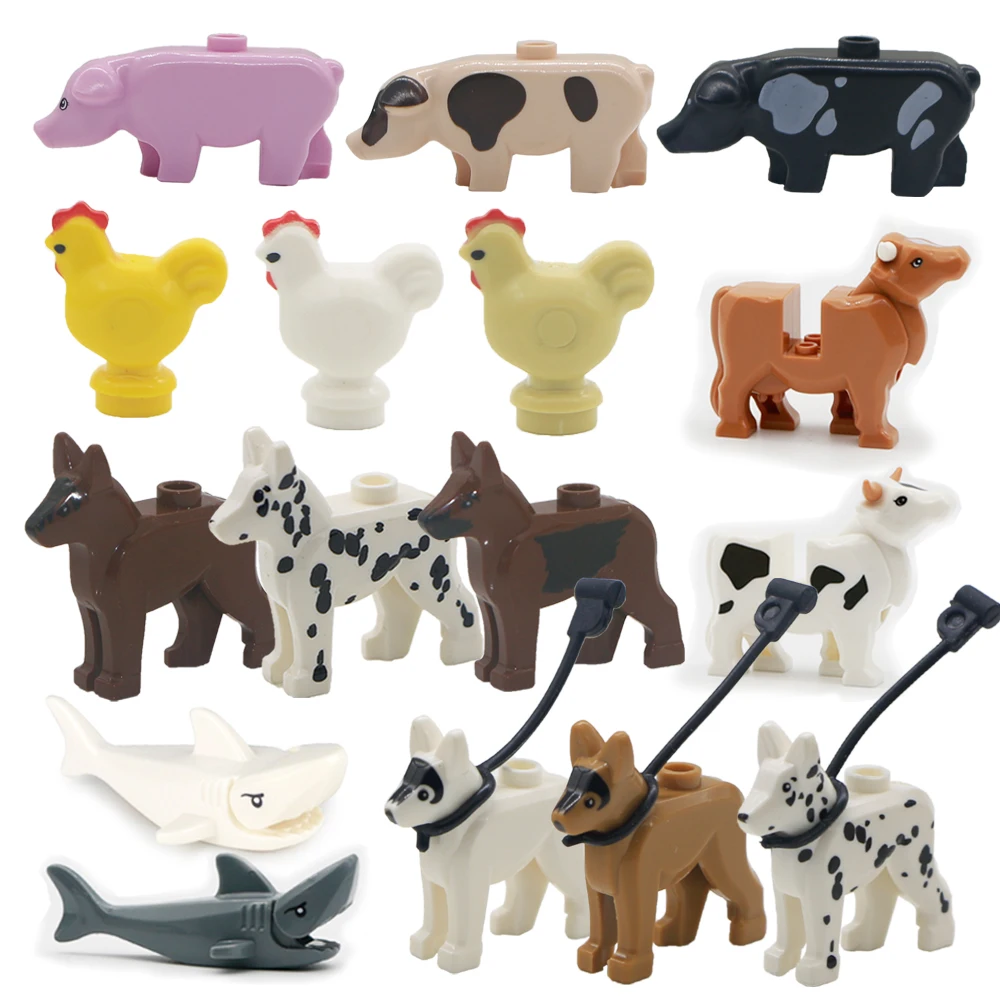 Городская курица, розовая свинья, курица, собака, гриб, городская полиция, собака, строительные блоки, печатный конструктор MOC, аксессуары для фигурок друзей, сборная игрушка
