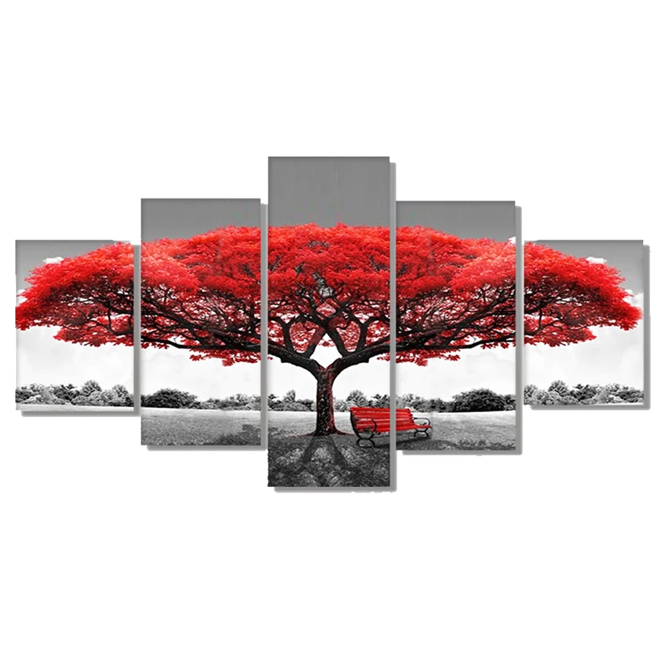 Алмазная вышивка сделай сам, красное дерево 5D, алмазная живопись, вышивка крестиком, полная вышивка, 5 панелей, алмазная живопись, набор для украшения дома