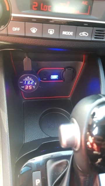 3 in 1 Car charger Voltmeter Thermometer