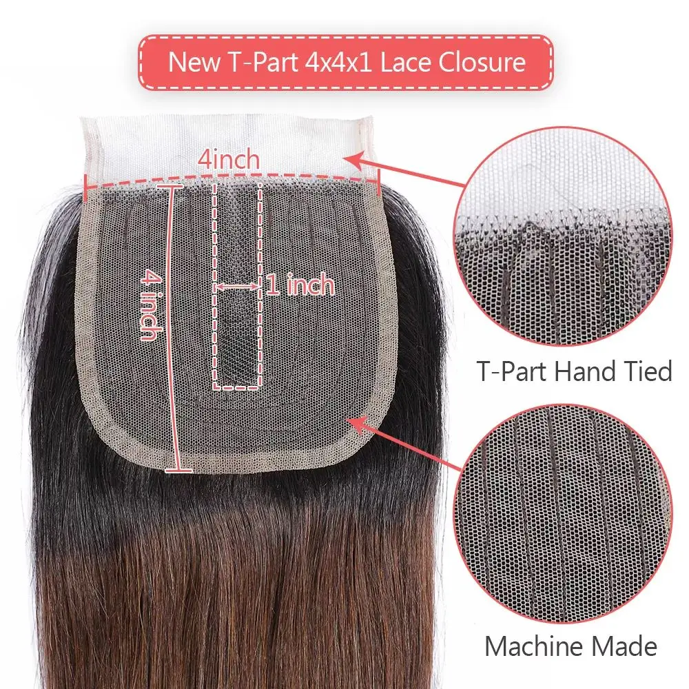 Прямые человеческие волосы Uneed с эффектом омбре, 3 пряди с кружевной частью 4x4X1T, волосы кутикулы 1b427 Реми, перуанские пучки волос с переплетением на застежке