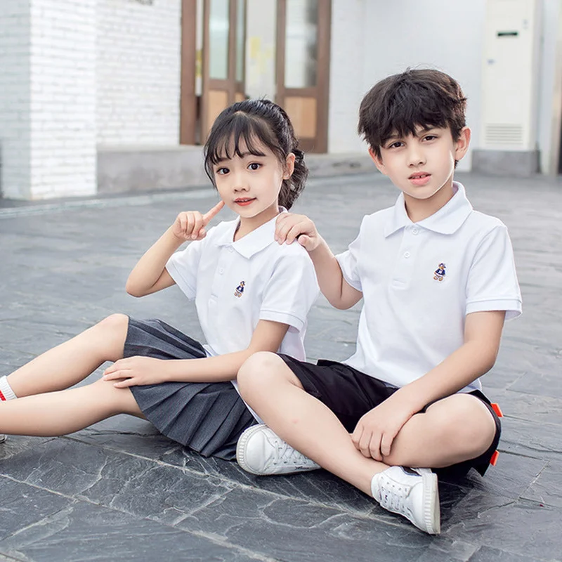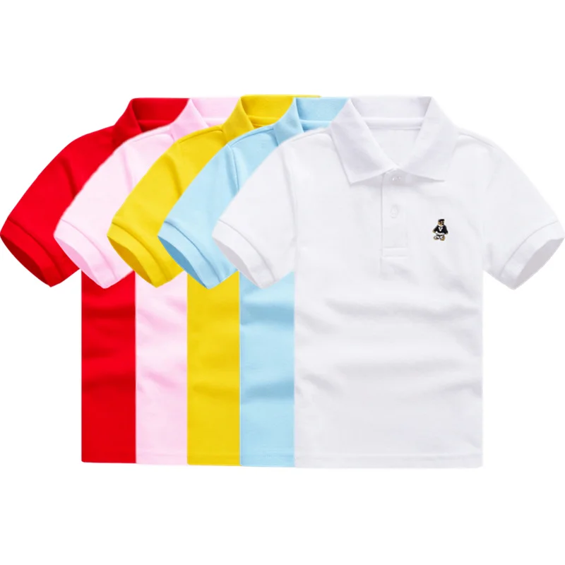 Рубашка-поло для мальчиков и девочек, летняя, Школьная, с коротким рукавом, с мультяшной вышивкой