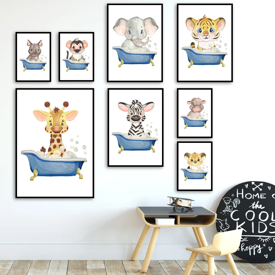 Льва, слона зебра тигр Бегемот для ванной комнаты настенный художественный холст постер для детской комнаты туалета Украшение стены стикер o393