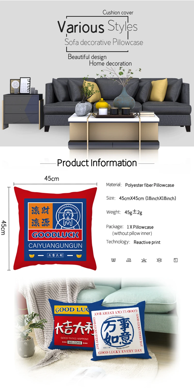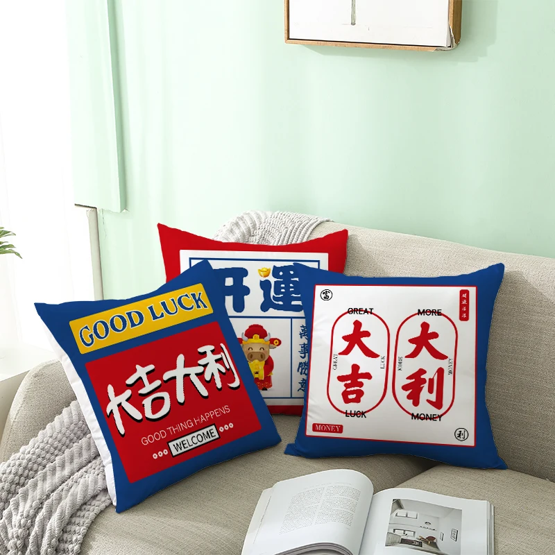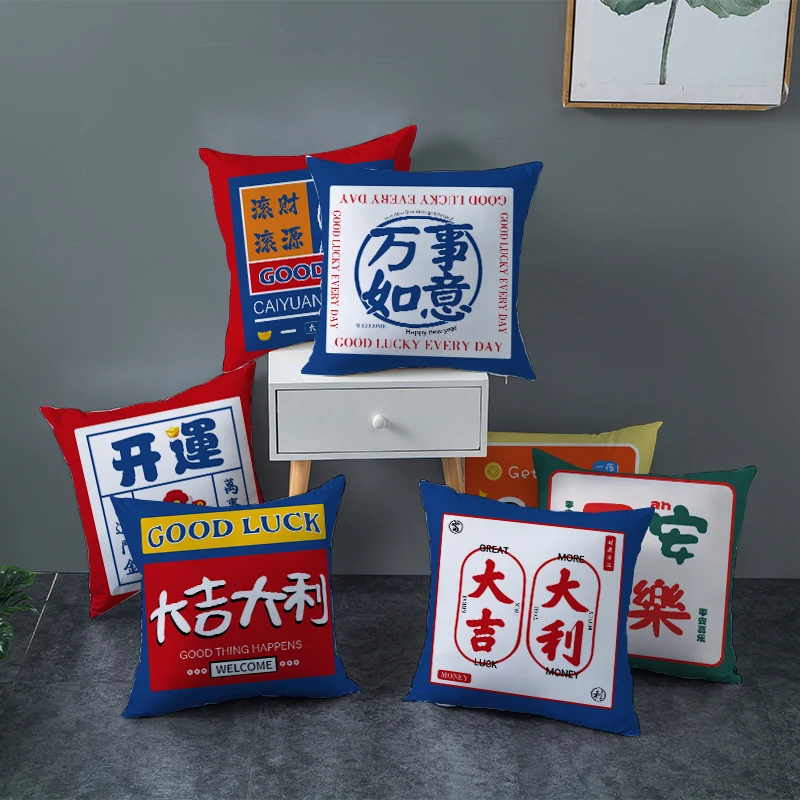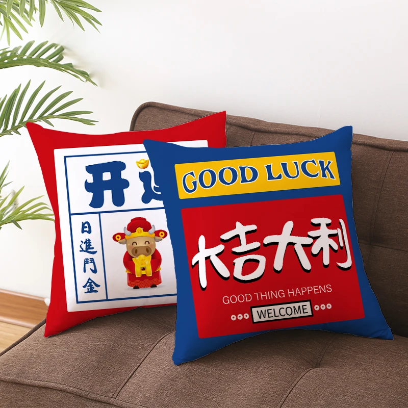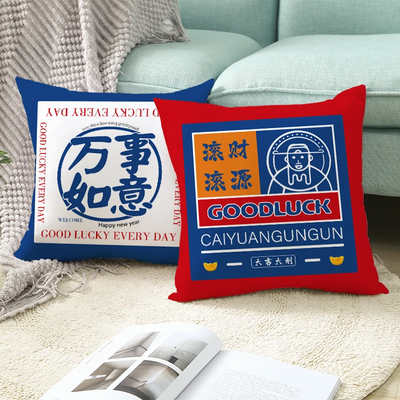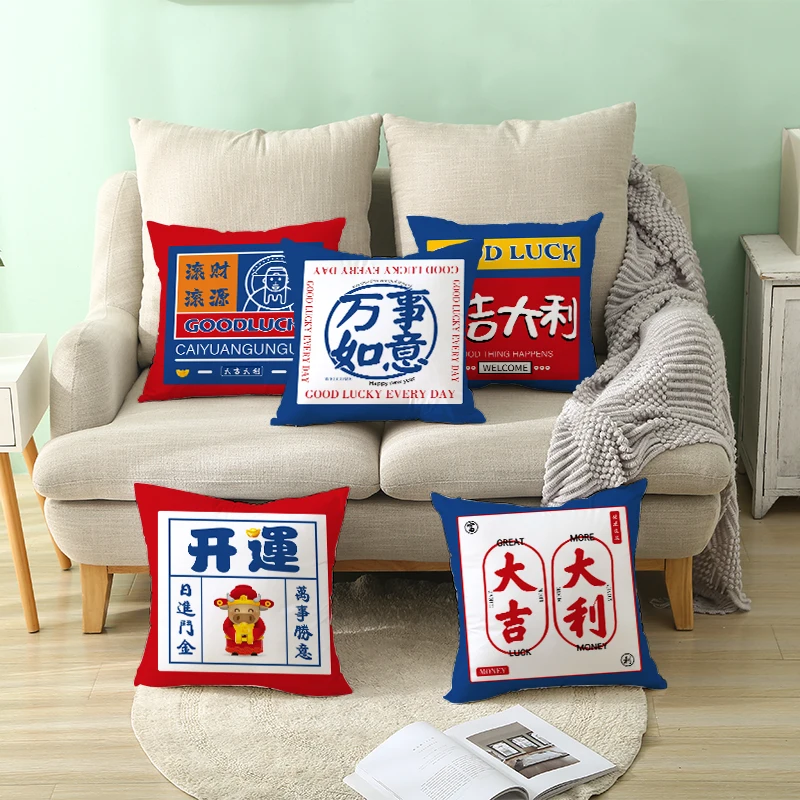 Новинка 2021, Новогодняя наволочка в китайском стиле, креативная наволочка для дивана с текстовым принтом, наволочка из персиковой кожи на заказ