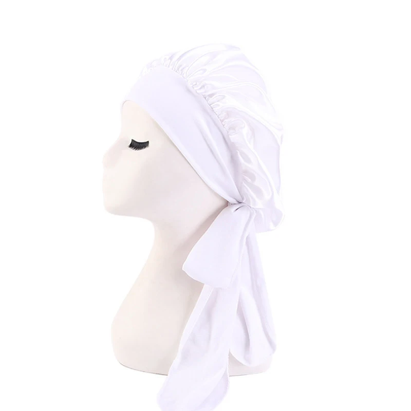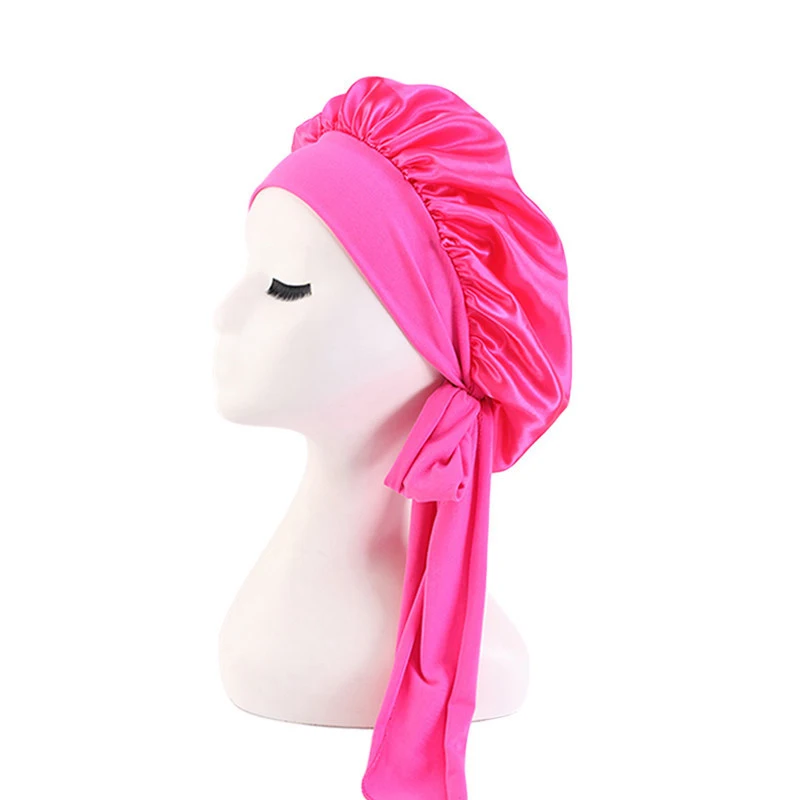 Однотонная атласная шапка с широкими эластичными завязками, женская шапка для ухода за длинными волосами и ночного сна, регулируемая шапка для укладки волос, шелковая головная повязка, шапка для душа