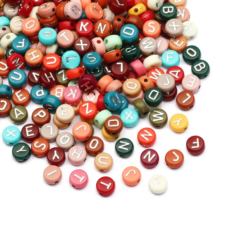 Бусины Алфавит для изготовления ювелирных изделий сделай сам, плоские бусины с отверстием россыпью, буквы круглые акриловые бусины для изготовления браслетов, ожерелий, аксессуаров