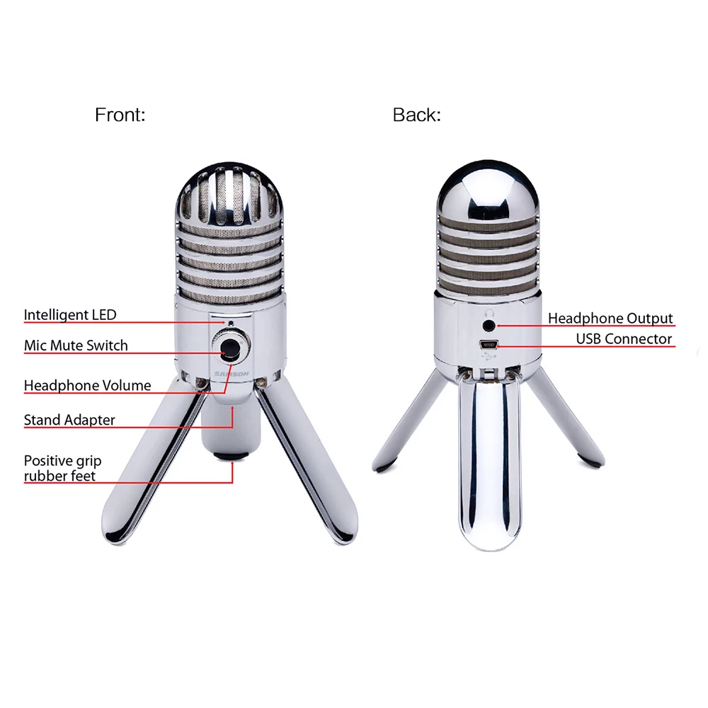 Samson Meteor Mic-это универсальное решение для записи музыки на вашем компьютере. Идеально подходит для вашей домашней студии, также идеально подходит для Skype, iChat или программного обеспечения распознавания голоса. С Samson Meteor Mic вы можете сделать невероятные записи, если вам нравится.