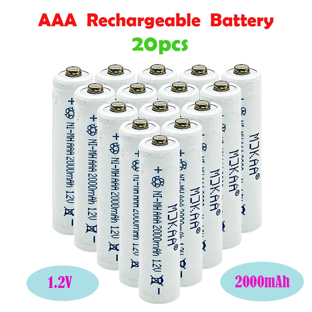 20 шт. AAA 3A аккумуляторная батарея 2000mAh 1,2 V Ni-MH аккумуляторная батарея AAA для игрушки дистанционного управления