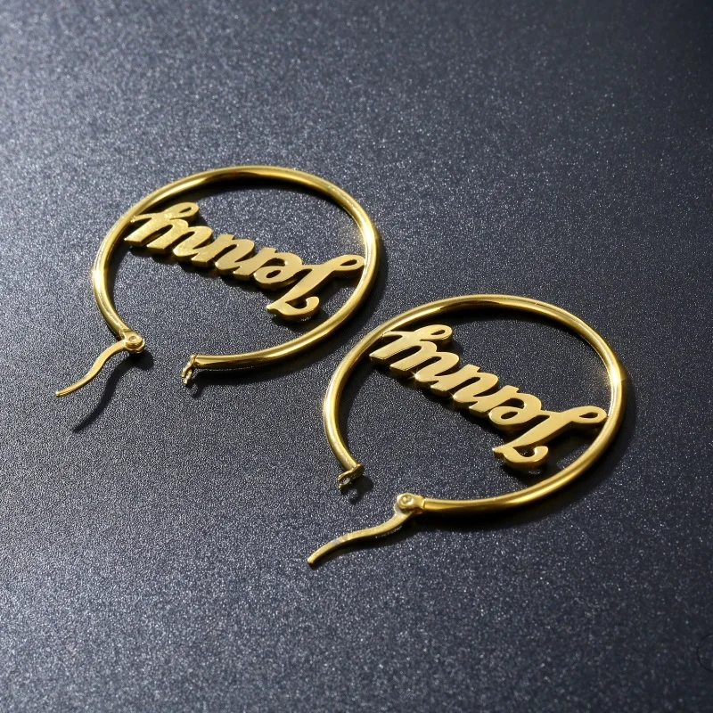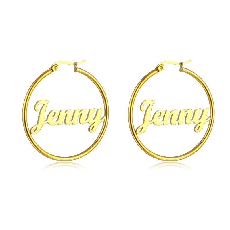 Серьги-кольца из нержавеющей стали настраиваемым именем на заказ серьги панк стиль Пользовательские Круг Серьги с заявлением слова номер
