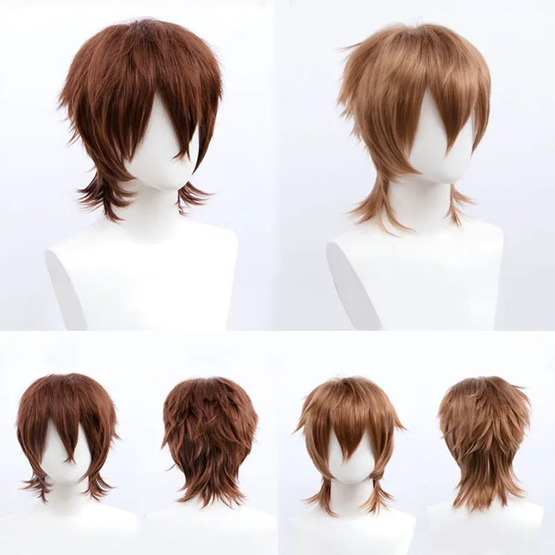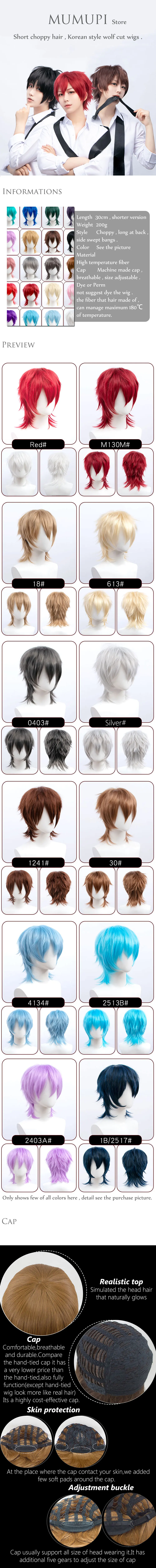 Парики синтетические короткие мужскиеженские, с волчьей челкой, для косплевечерние, в Корейском стиле, розовые, красные, синие, фиолетовые