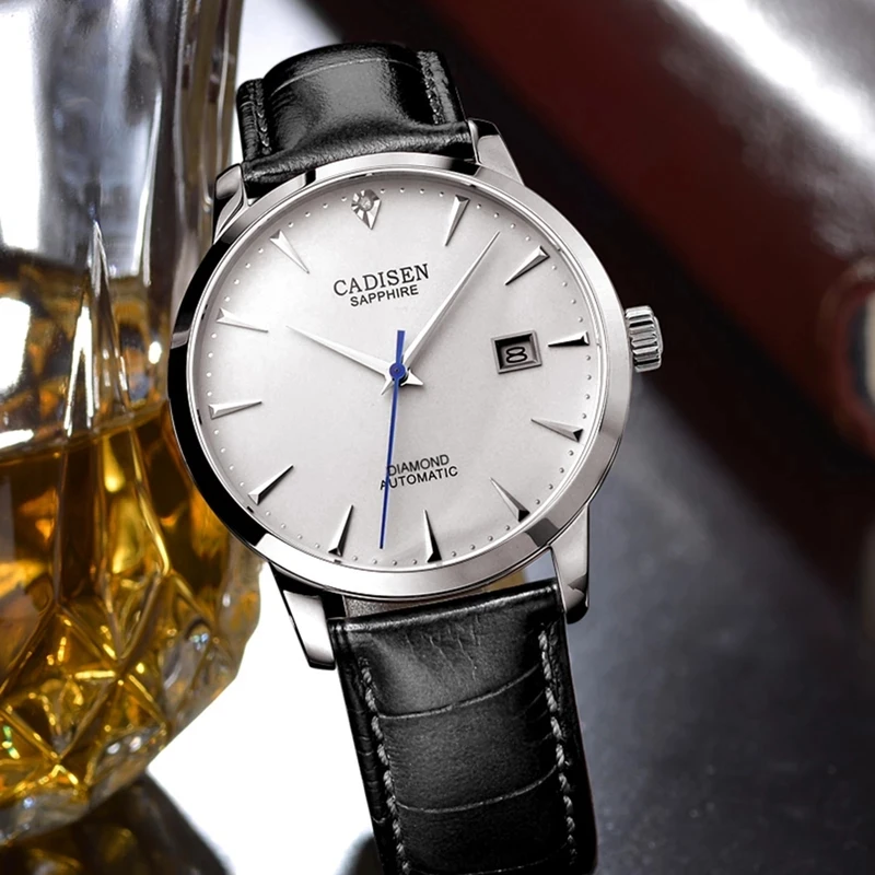 Мужские механические наручные часы CADISEN, мужские часы топового бренда, роскошные часы MIYOTA 9015, настоящие алмазные часы, подарки, изогнутые часы с сапфировым стеклом