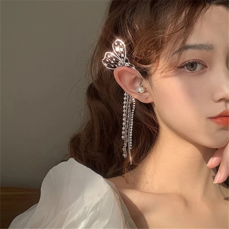 Модные серьги-клипсы с хрустальными бабочками, изысканный ушной крю...
