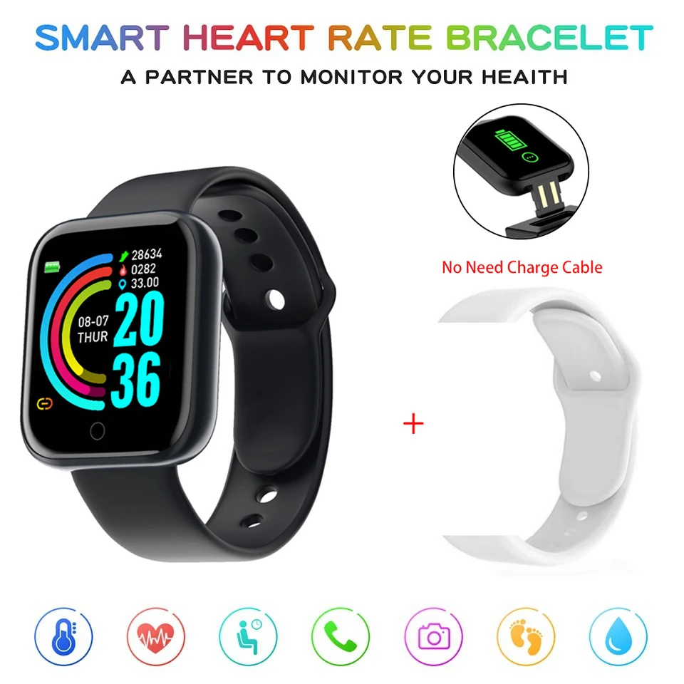 Умные цифровые часы D20 для женщин и мужчин с пульсометром, шагомер...