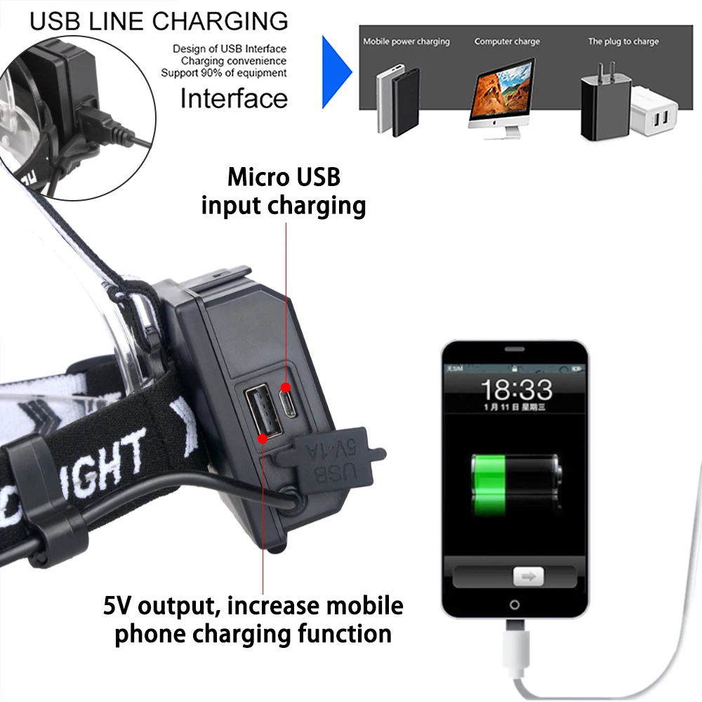 Вариант 1: светодиодная фара + usb-кабель (Без аккумулятора)Вариант 2: светодиодная фара + usb-кабель + 3 шт. 18650Вариант 3: светодиодный налобный фонарь + usb-кабель + 3 шт. 18650 + подвесная пряжка + сумка на молнии для хранения