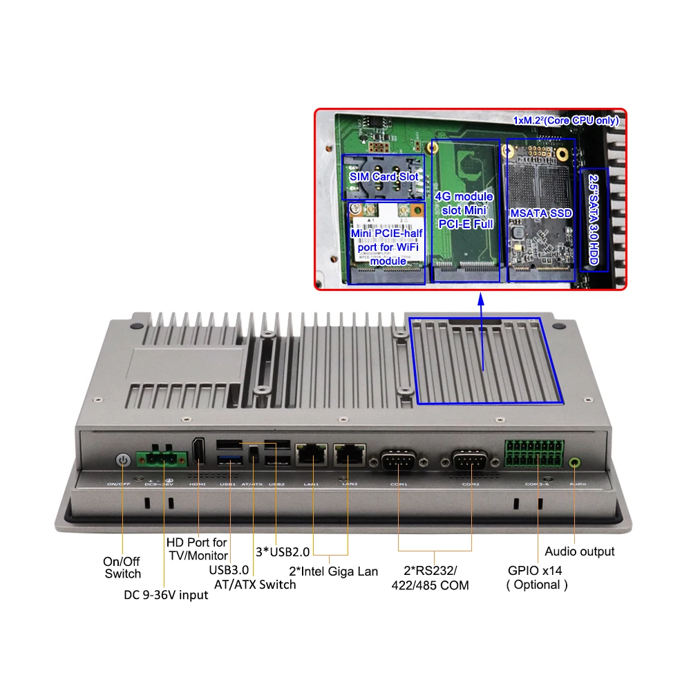 1xmini-pmiefull порт, onboardSIMcard слот, for3G/4gmodule