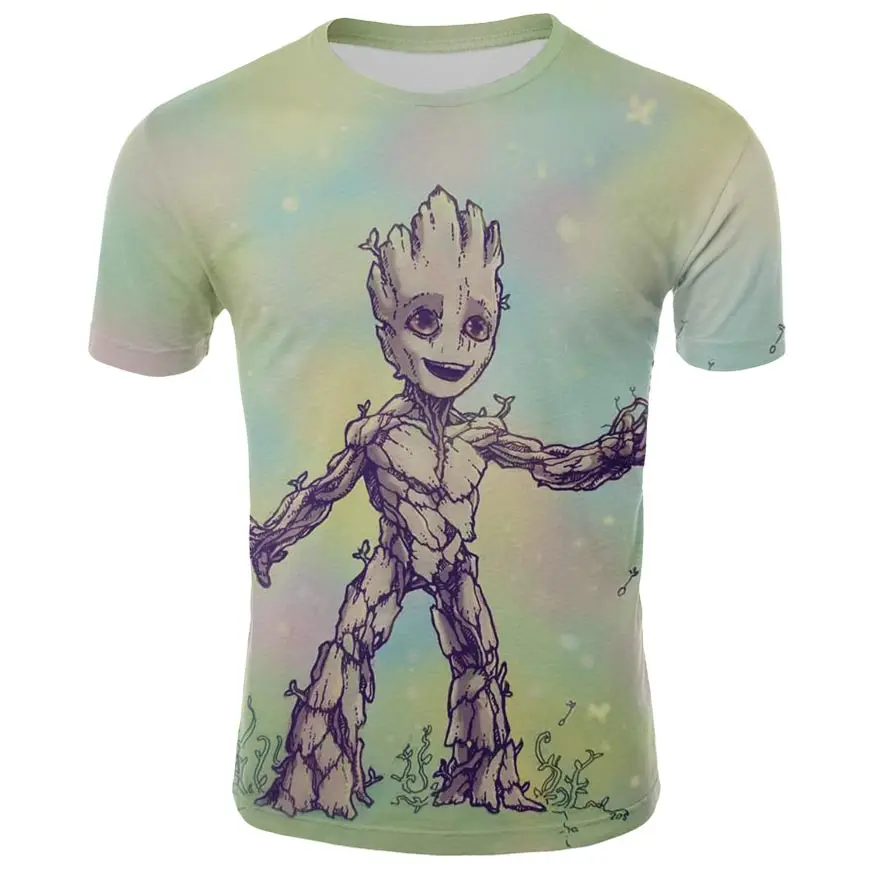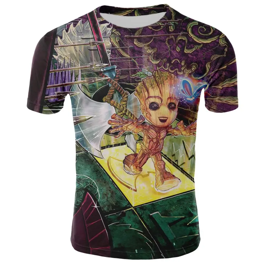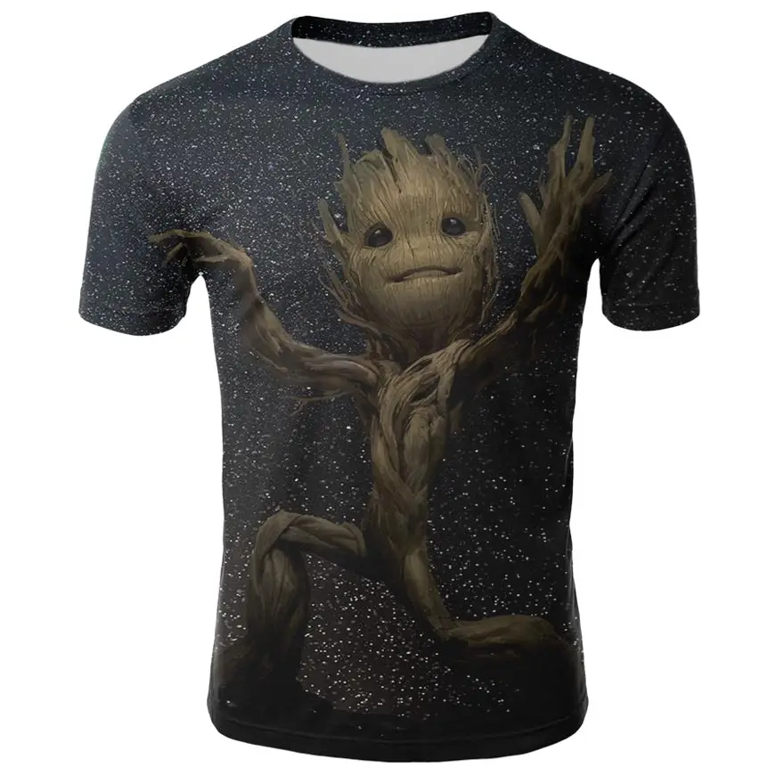 Футболка мужская с забавным аниме принтом Грут стражи Галактики, Oversized, в стиле хип-хоп, круглый вырез, модная летняя, свободная