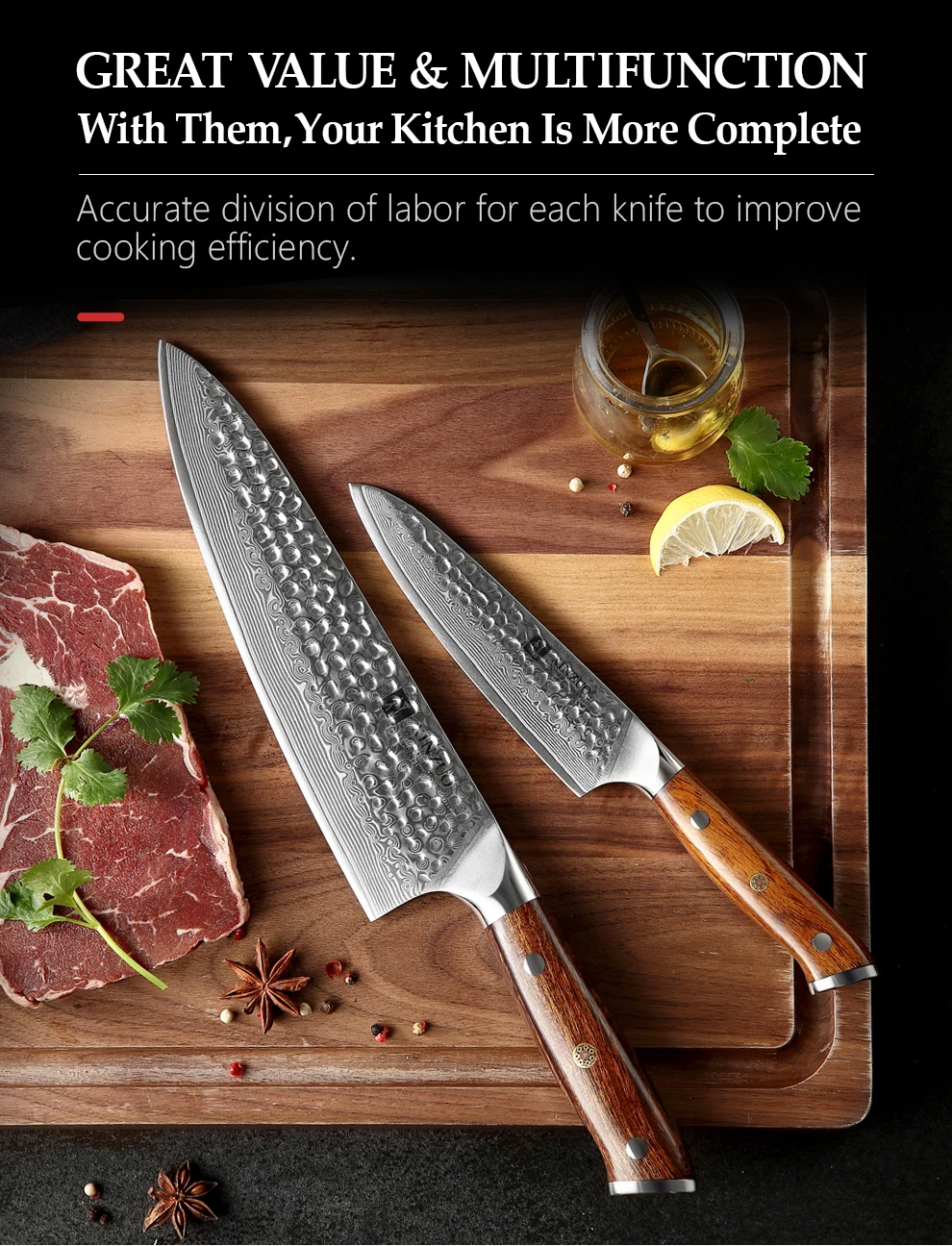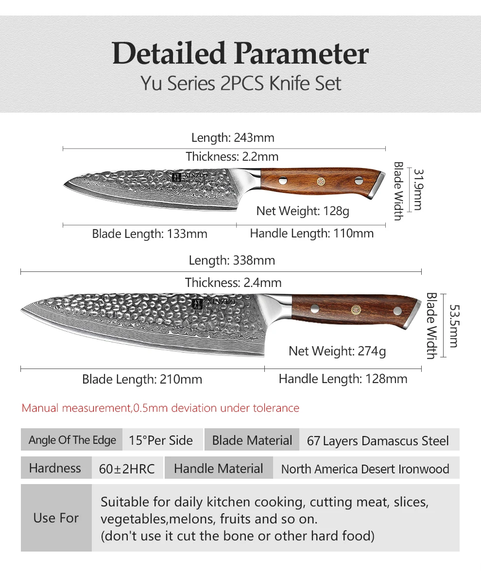 Набор ножей XINZUO из дамасской стали, 5 дюймов, 8,5 дюйма, 2 шт.