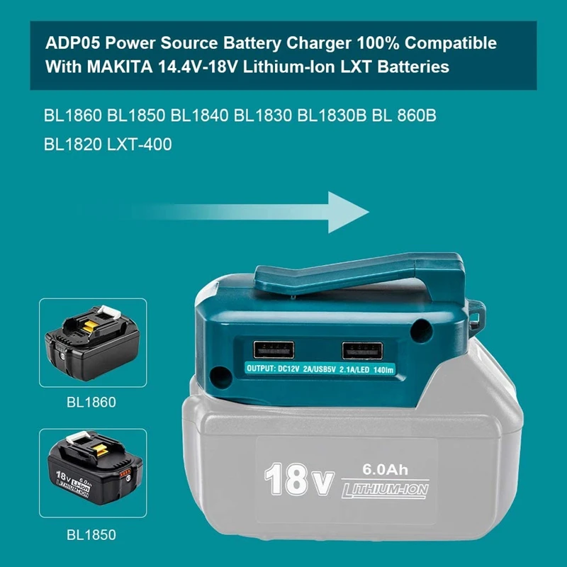 Для Makita ADP068 14,4 В/18 в литий-ионный аккумулятор адаптер источник питания зарядное устройство с двумя портами USB светодиодный светильник