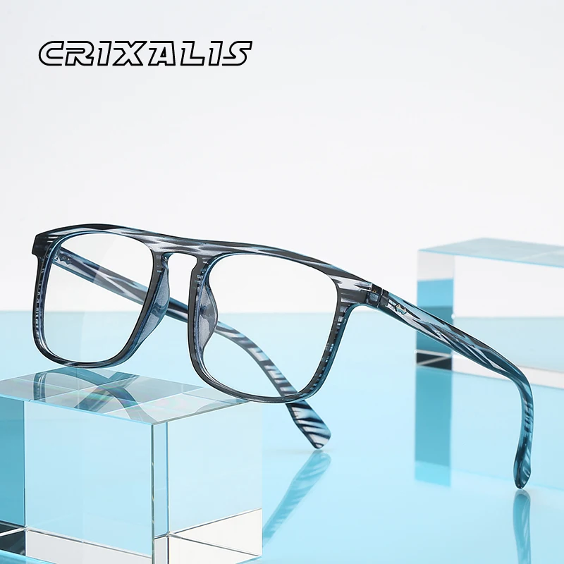CRIXALIS фирменного дизайна с квадратным покрытая цельной полиуретановой кожей синий светильник очки Для женщин мужской Винтаж оптические очки для чтения для мужская оправа для очков по UV400