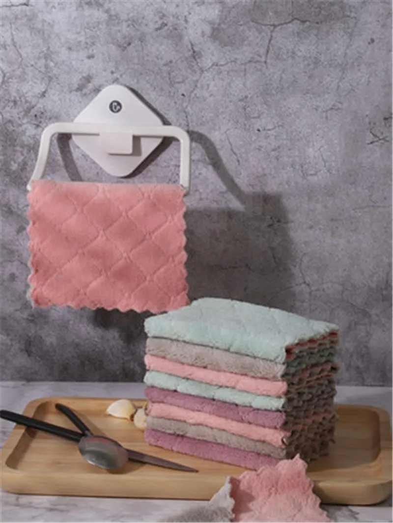 Коралловая бархатная салфетка для мытья посуды, впитывающее полотен...