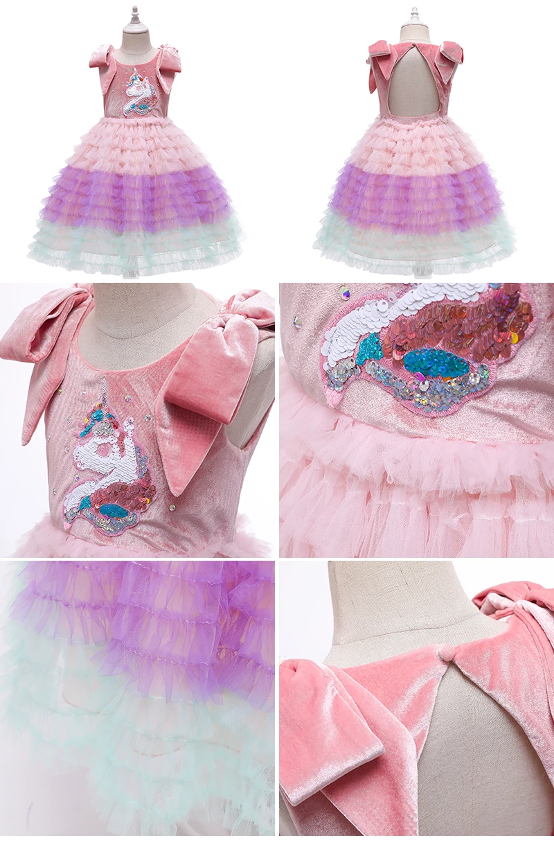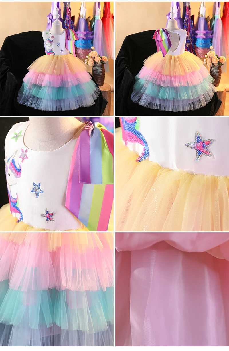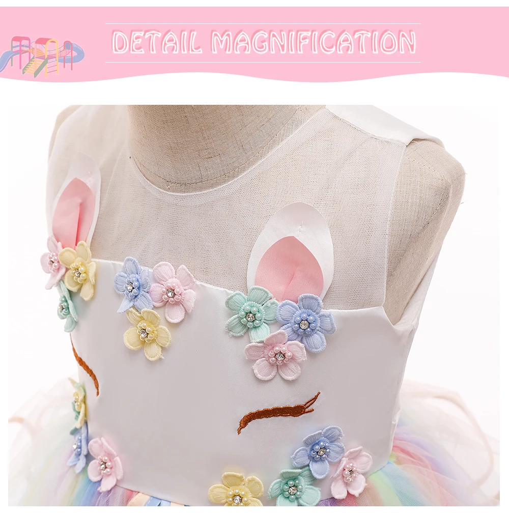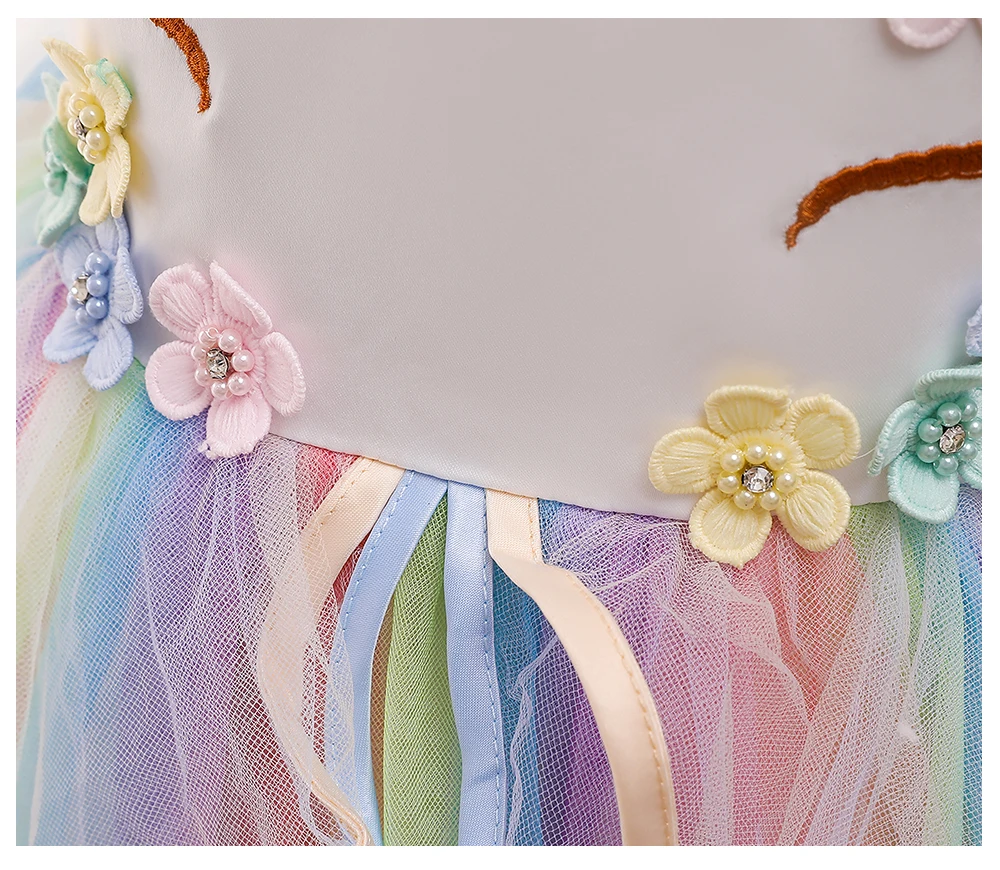 Платье для девочек на свадьбу, разноцветное Сетчатое платье в цветочек, подарок на день рождения, платье принцессы с единорогом, праздничное платье для выступления