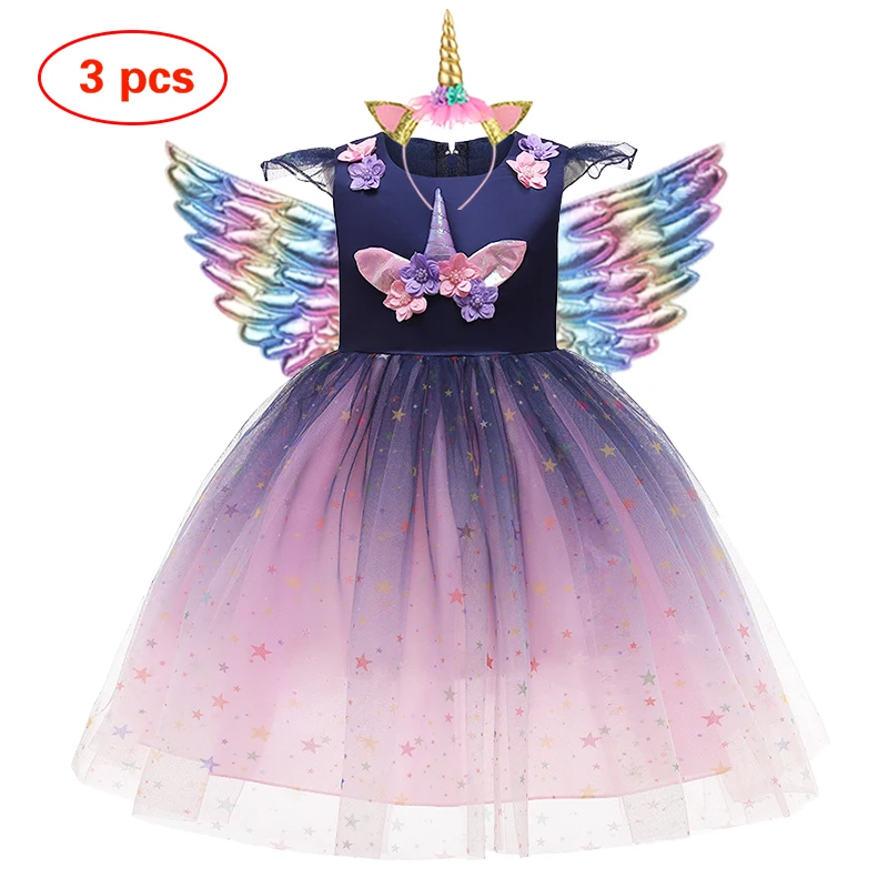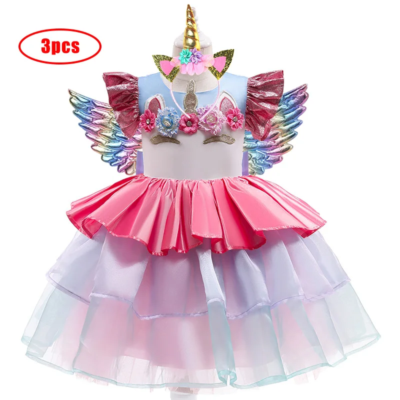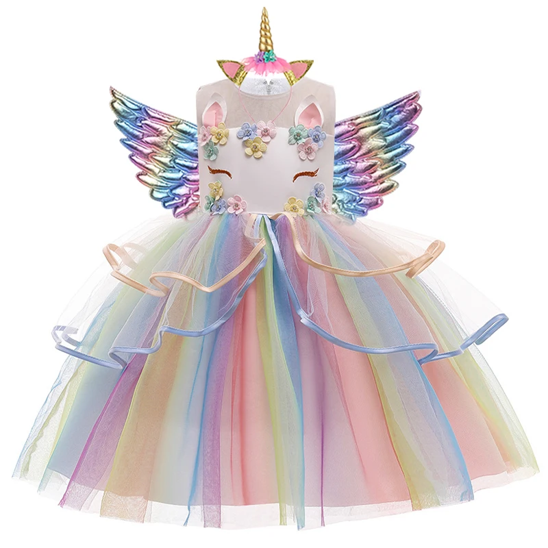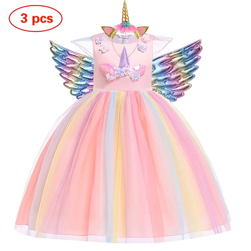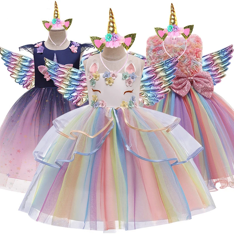 Разноцветное платье с единорогом для девочек платье принцессы на Хэ...