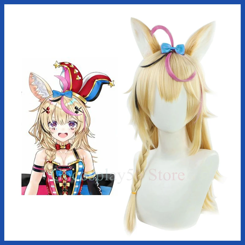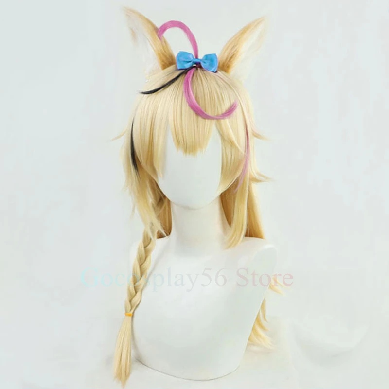 VTuber Omaru парик в горошек Hololive блонд Золотой Плетеный хвост для девочек Youtuber Длинные прямые Косплей волосы