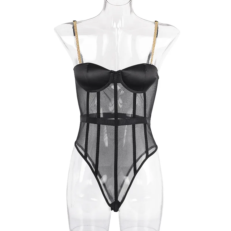 Европейские и американские взрывы 2021, лидер продаж, Летний Новый пикантный полупрозрачный пикантный комбинезон на бретелях с металлической цепочкой