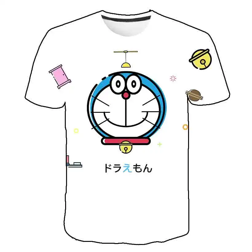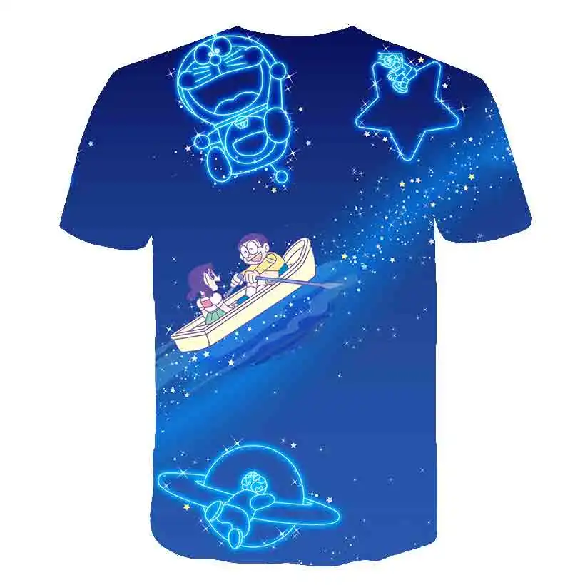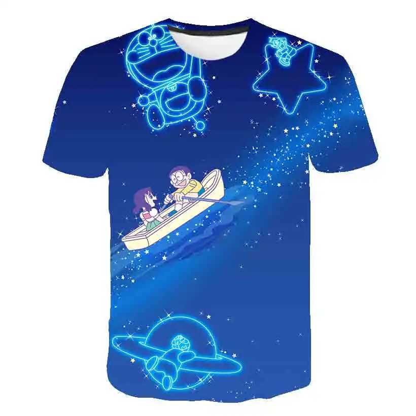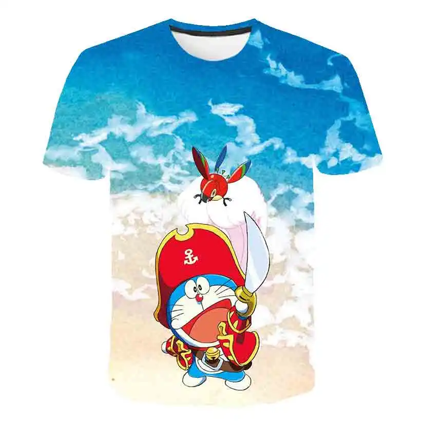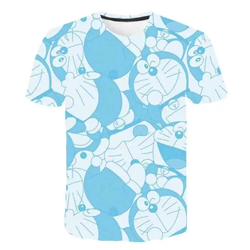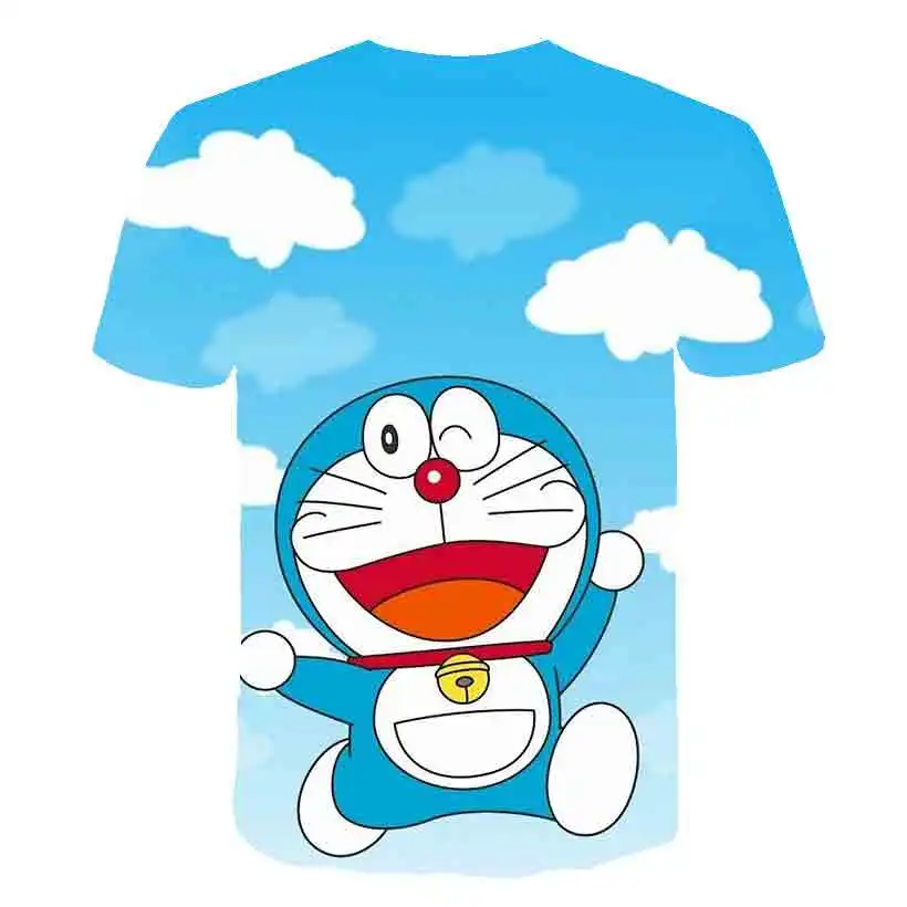 Летняя детская футболка Doraemon, Детская уличная мода для мальчиков и девочек, милый синий толстый человек, 3D принт, топы с короткими рукавами, Детская рубашка