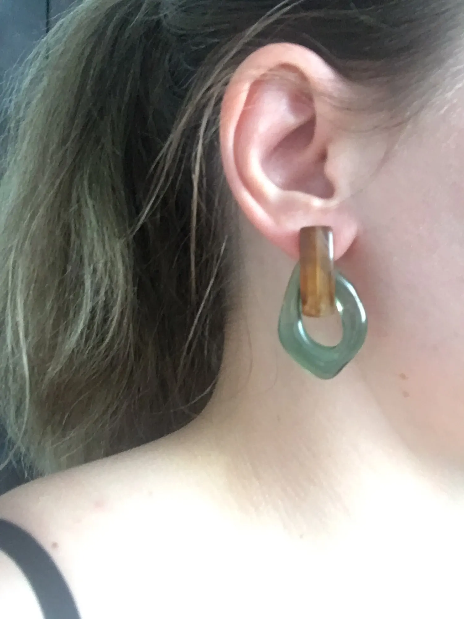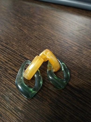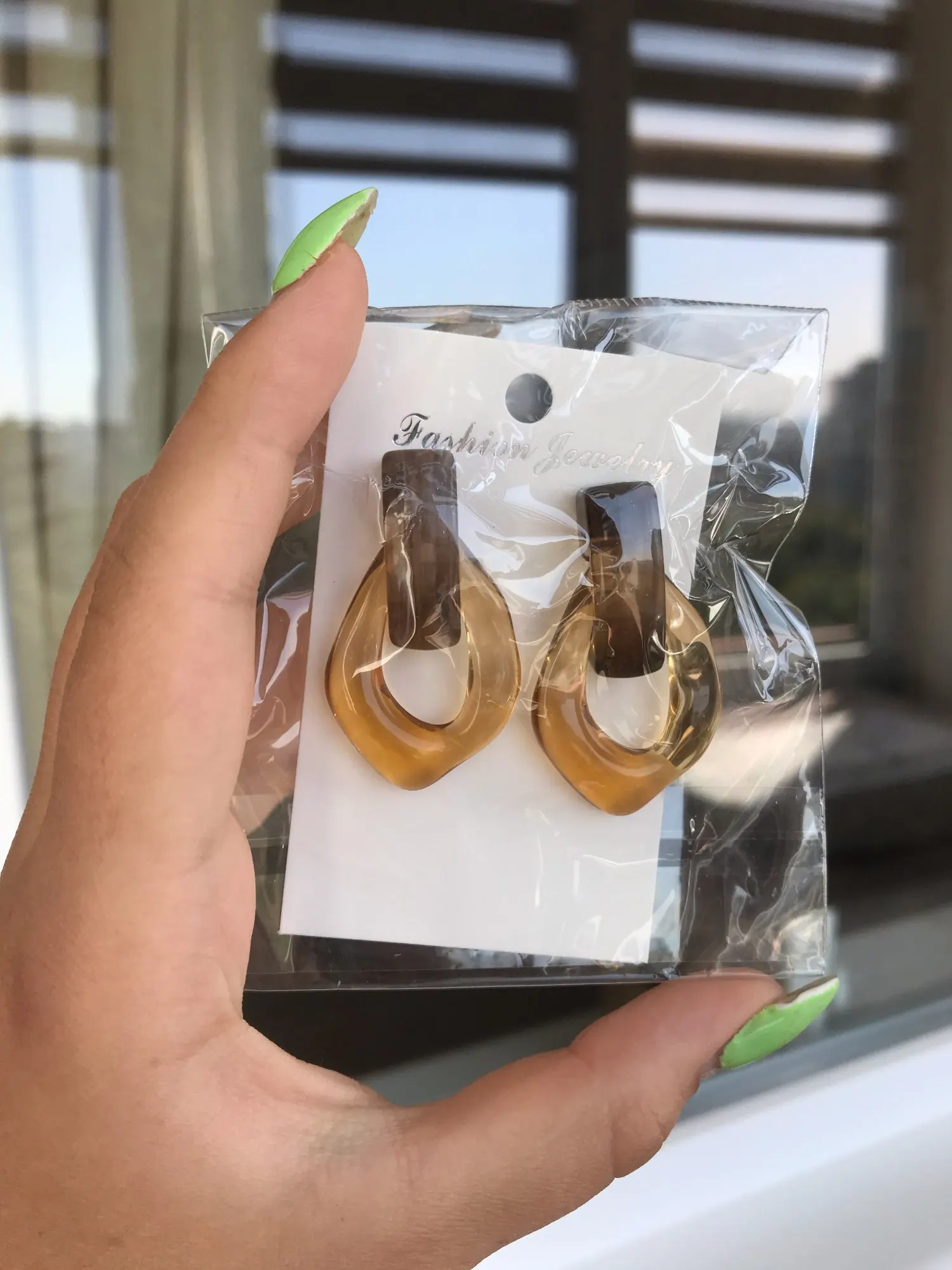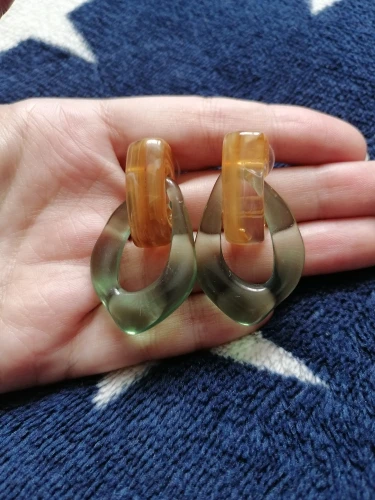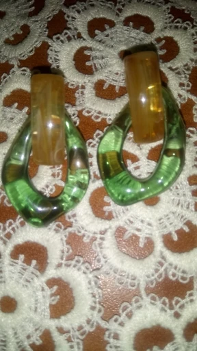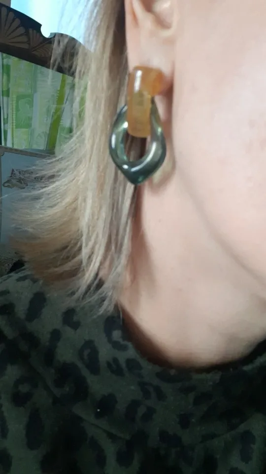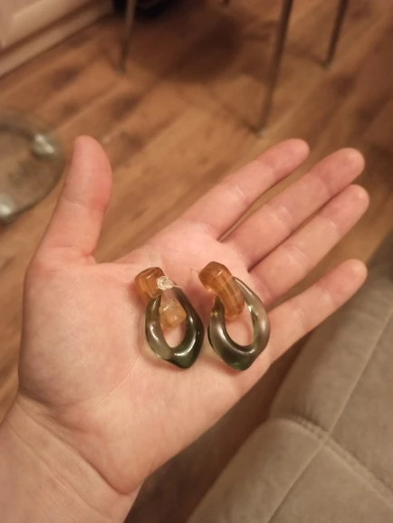 Они невероятные! Я влюбилась ещё когда увидела их до заказа, а когда получила - они стали моими любимыми. Цветные, но не навязчивые серьги. Лёгкий прозрачный пластик. Если немного поколдовать - можно снять зелёную часть и будут только коричневые серьги. 2в1