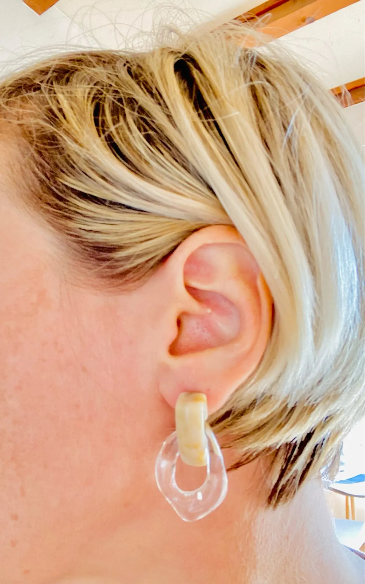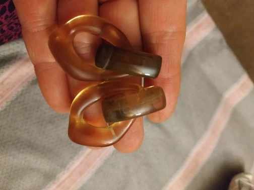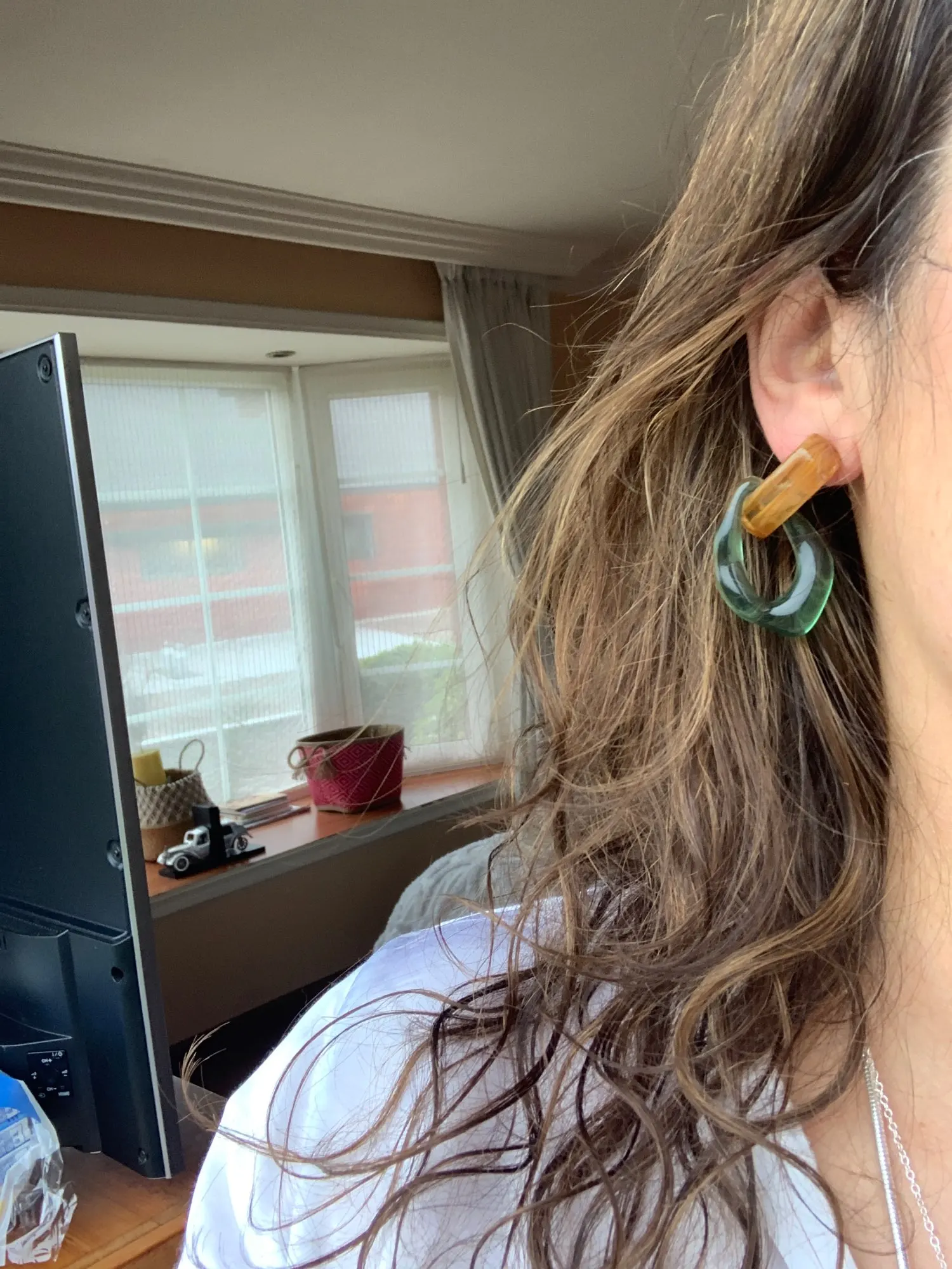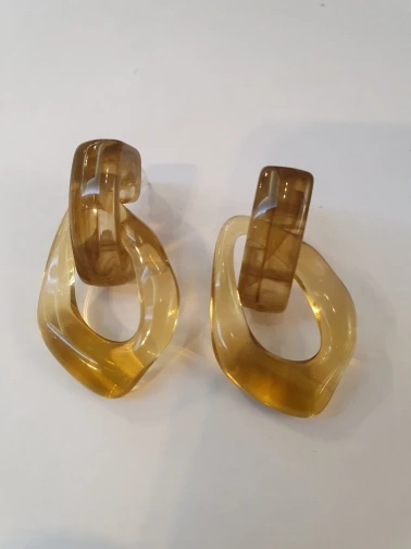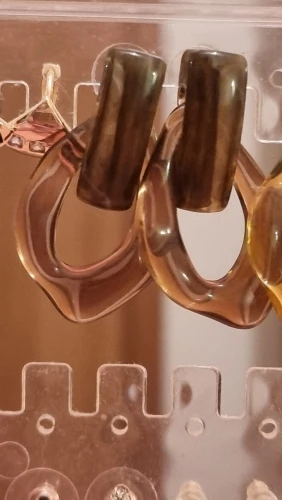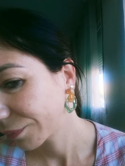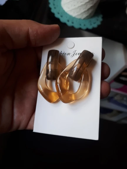 Они невероятные! Я влюбилась ещё когда увидела их до заказа, а когда получила - они стали моими любимыми. Цветные, но не навязчивые серьги. Лёгкий прозрачный пластик. Если немного поколдовать - можно снять зелёную часть и будут только коричневые серьги. 2в1