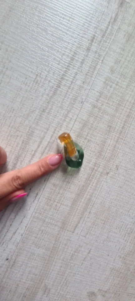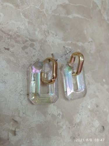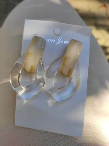 Странные сережки , если смотреть на них прямо, то смотрятся они хорошо, Пластиковые кольца на свету переливаются. Но сбоку мне вообще не нравятся, очень выпирают, на фото видно. Прийдется покупать швензы и на них вешать эти пластиковые колечки.Доставка в Украину меньше месяца