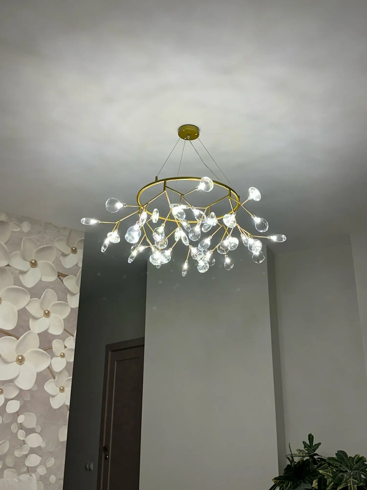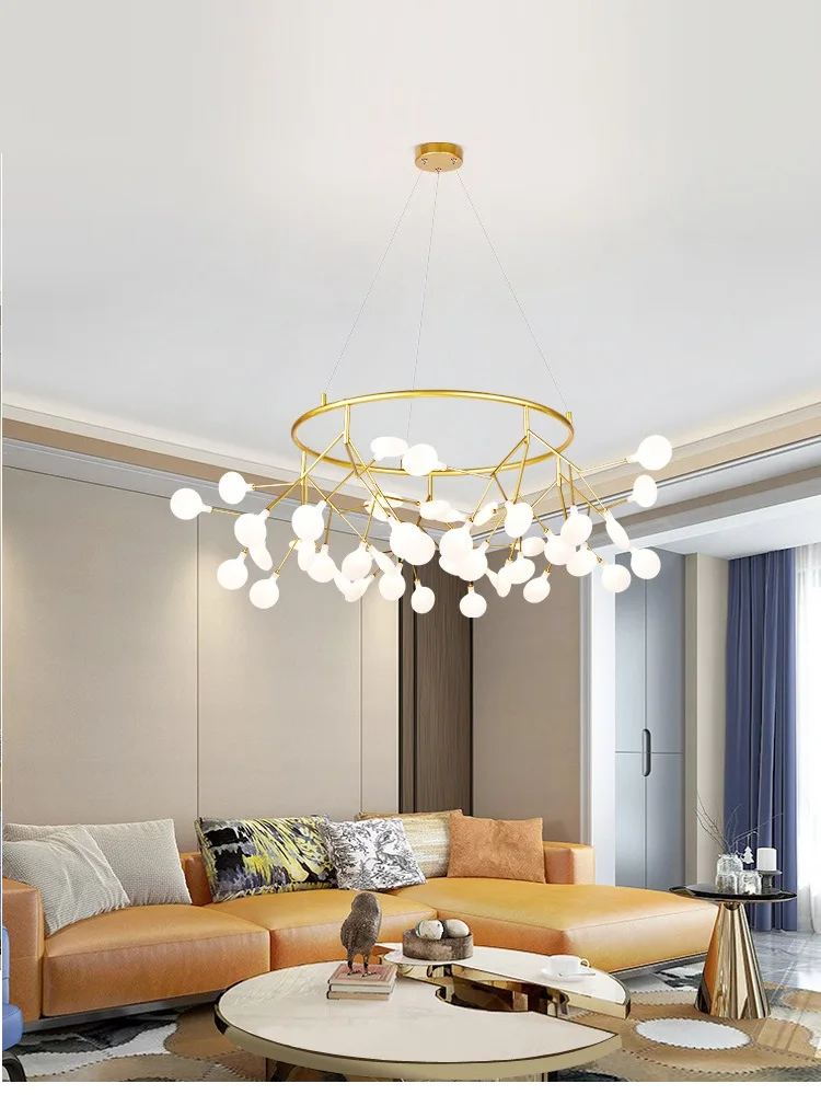 Светодиодная Современная Круглая Люстра Светлячок, стильная Подвесная лампа в виде ветвей дерева, Декоративный Круглый осветительный прибор, висячий светодиодный подвесной светильник