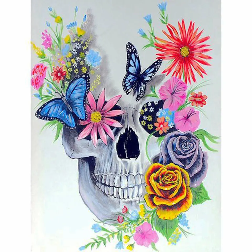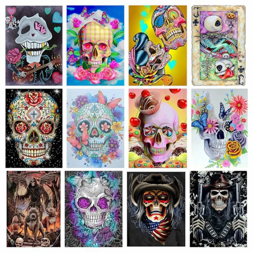 5D алмазная живопись, заполненная квадратнымикруглыми стразами ручной работы сделай сам, инкрустация стразами, вышивка крестиком Череп, домашняя подвесная картина, украшение, подарок