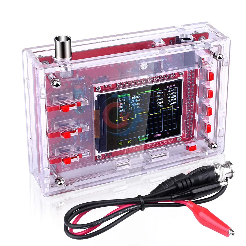 1 шт * Полностью Собранный цифровой осциллограф 2,4 "на тонкопленочных транзисторах на тонкоплёночных транзисторах ЖК-дисплей Дисплей с Аллигатор зонд Тесты зажим прозрачный акриловый чехол
