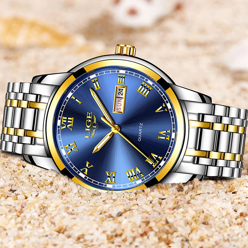 Часы мужские 2019, Модные Кварцевые Золотые часы LIGE, брендовые Ро...