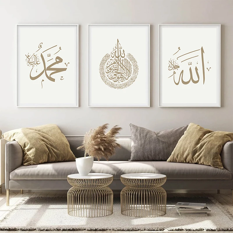Мусульманская бежевая арабская каллиграфия, плакат, мусульманская фотография, современные принты, Настенная картина, интерьер, декор для гостиной