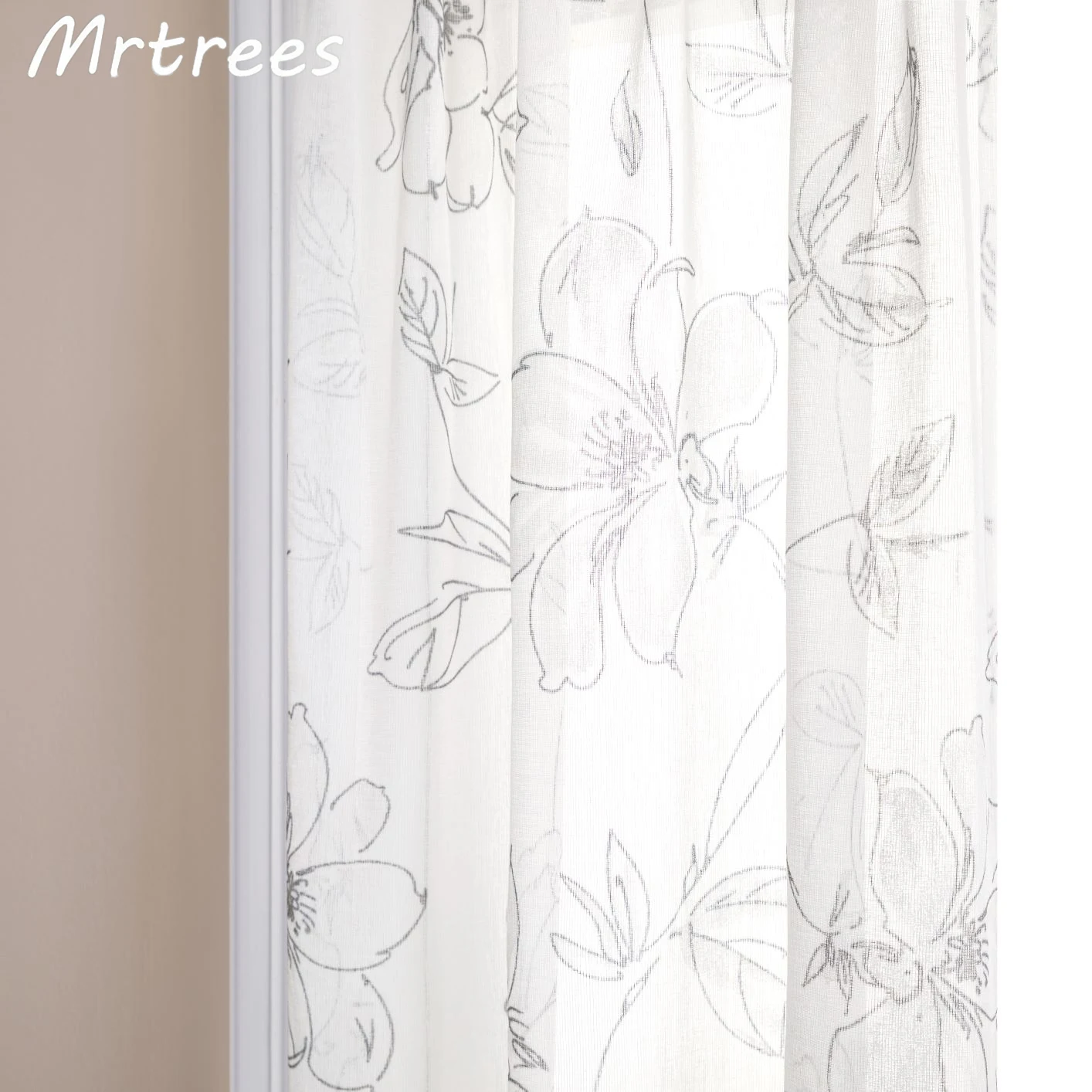 Тюль MRTREES с цветочным принтом, прозрачные шторы для гостиной, сп...