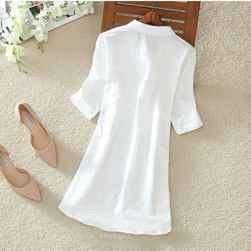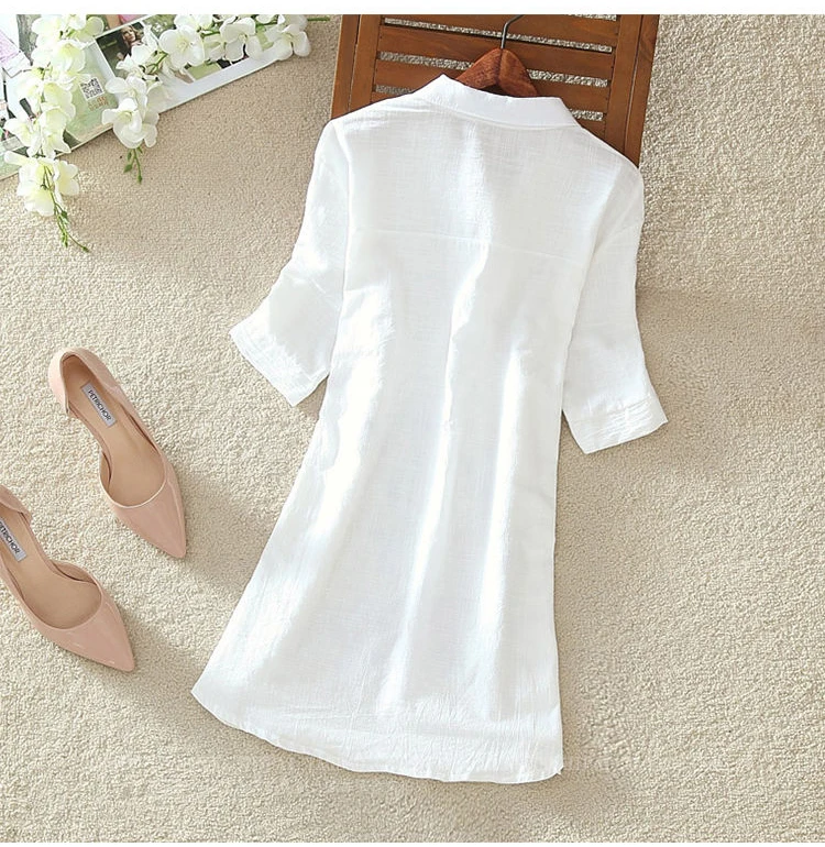 Белая рубашка с длинным рукавом Женские офисные блузки размера плюс 5XL Повседневные платья из хлопка и льна с вышивкой в винтажном стиле; С отложным воротником с коротким рукавом летние женские топы