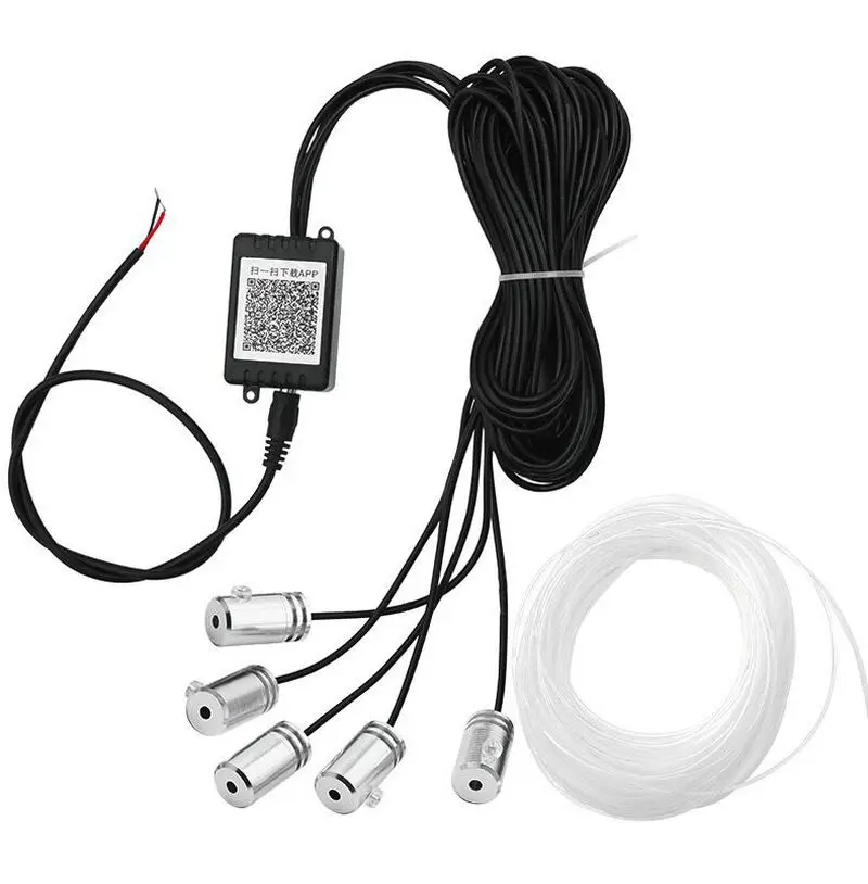 5 в 1 RGB LED Автомобильный интерьерный волоконно-оптический приборная панель дверь атмосферный светильник s Bluetooth смартфон приложение управление волоконно-оптический светильник источник для PMMA 3 мм (Dia.) С юбкой Т-кабель боковой светящийся светильник ing DIY Kit