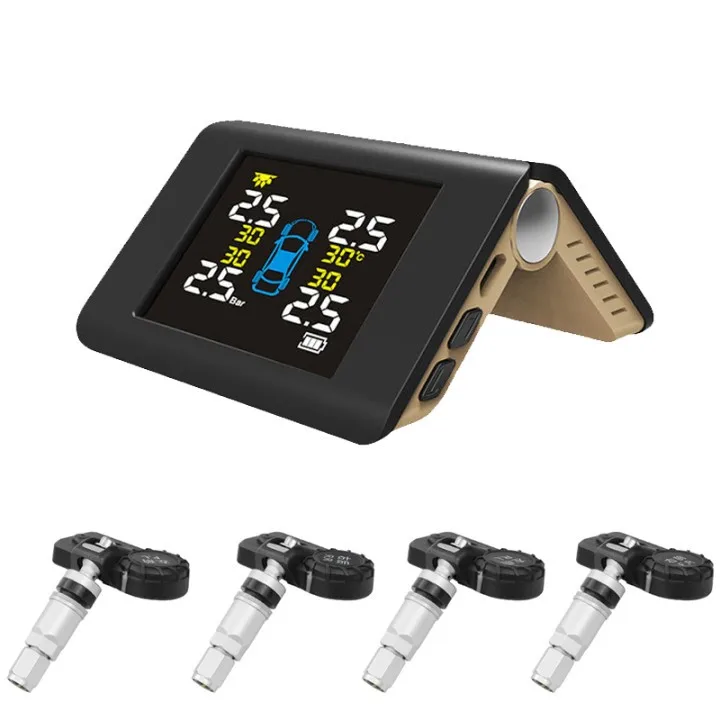 Бежевый давления воздуха в шинах на солнечных батареях Мощность система контроля давления в шинах с 4 датчиками ЖК-дисплей в режиме реального времени Дисплей давление в шинах автомобиля автоматическая система сигнализации