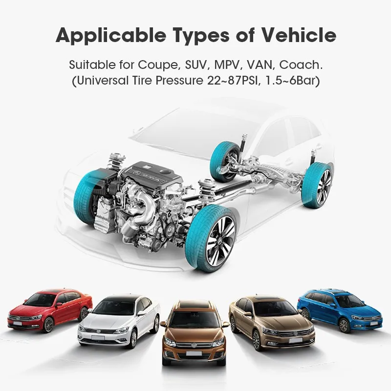 Особенности:1. Система мониторинга давления в шинах может контролировать давление в шинах/состояние температуры в режиме реального времени, супер большой ЖК-экран имеет Высокоточный ЖК-дисплей, И статус четырех колес может отображаться на одном экране одновременно. Если происходит аномалия, это может напомнить водителю безопасно ездить в любое время.2. Высокоэффективная солнечная панель, встроенная металлическая литиевая батарея большой емкости, супер срок службы батареи3. Он поддерживает usb-зарядку, что означает, что вы можете использовать usb-кабель для зарядки в дождливую погоду, что очень удобно.4. Доступны различные устройства давления в шинах, и мощные чипы используются для точного контроля значения стабильности давления в шинах на протяжении всего процесса, с большим расстоянием приема и стабильными сигналами.4. Внешняя модель имеет 4 внешних датчика с водонепроницаемой оценкой IP67, подходит для использования в дождливые дни. Кроме того, они обладают высокой чувствительностью и хорошей точностью для измерения давления и температуры.5. Встроенная модель имеет 4 встроенных датчика с сверхвысокой точностью, точными данными и защитой от кражи, не влияя на нормальное использование транспортного средства, срок службы составляет 3-5 лет. Спецификация:Название продукта: LCD большой экран Солнечный автомобильный монитор давления в шинахЦвет изделия: черный, бежевыйХарактеристики продукта: внешний датчик, встроенный датчикTPMS:Размер изделия: 94*60*28 ммМатериал изделия: АБС-пластикИсточник питания: Встроенный литий-ионный аккумулятор 350 мАчРабочее напряжение: 3 вРабочая частота: 2,4 ГГцВремя отклика: 6SРабочая влажность: ниже 95%Внешний датчик (опционально)Рабочее напряжение: 2,0-3,6 VРабочая частота: 433,92 МГц ± 20,00 МГцДиапазон измерения давления: 0-6,0 барДиапазон измерения температуры: -40-130 °CРабочая температура: -20 ~ + 70 °CТемпература хранения: -40 ~ + 125 °CВодонепроницаемость: IP67Батарея Продукта: встроенный аккумулятор CR1632Срок службы батареи: 1-2 года (сменный аккумулятор)Внутренний датчик (опционально)Рабочее давление: 0-6,0 барТочность давления: ± 0,1 барЧастота передачи: 433,92 МГц ± 20,00 МГцРабочая температура: -20 ~ + 70 °CТемпература хранения: -40 ~ + 125 °CРабочее напряжение: 2,0-3,6 VБатарея Продукта: встроенный аккумулятор CR24500Срок службы батареи: 3-5 лет (не заменяется, датчик должен быть заменен, когда аккумулятор полностью разряжен)Упаковочный лист:Внешний датчик: приемник * 1, внешний датчик * 4, usb-кабель * 1, аксессуары для установки * 1 комплектРуководство * 1Встроенный датчик: приемник * 1, встроенный датчик * 4, USB кабель * 1, руководство * 1Посылка Вес: внешнего датчика: 200g, встроенный датчик: 300 г Примечание:Возможны отклонения в размере от 1 до 2 см при измерении вручнуюИз-за разницы между оборудованием камеры и дисплеем фактический цвет продукта может отличаться от изображения, спасибо за понимание.