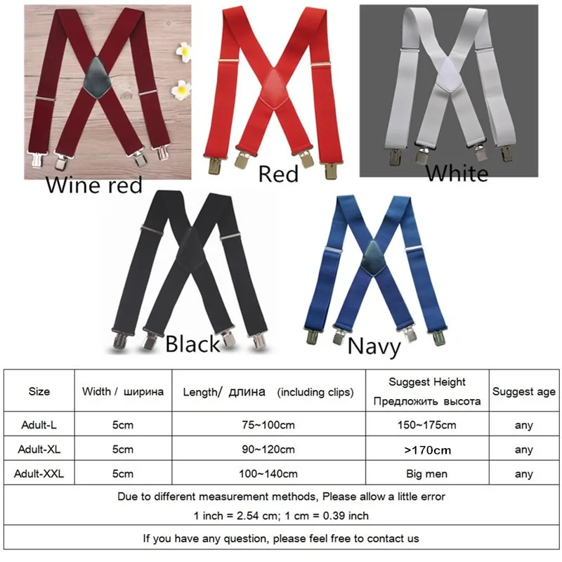 Размера плюс шириной 50 мм Для мужчин подтяжки высокие эластичные регулируемые 4 крепких зажимы подвески для тяжелых условий эксплуатации Чехол для спинки заднего брюки с подтяжками, 5 цветов