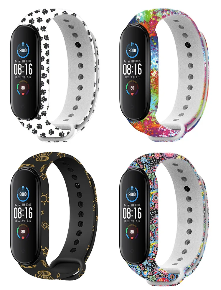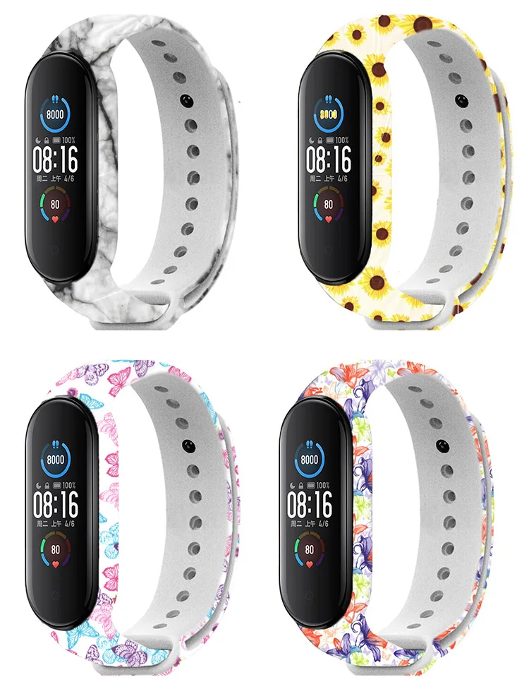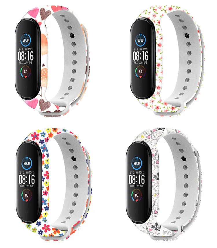 Цветной браслет с цветами для Mi Band 4 5 6, сменный ремешок для Xiaomi miband 3 4, универсальный силиконовый ремешок на запястье для mi3