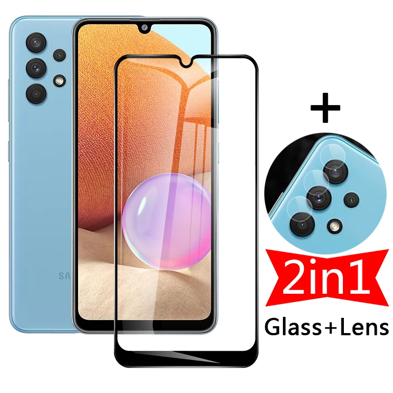 2 в 1 закаленное стекло для Samsung Galaxy A32 4G Полное покрытие З...